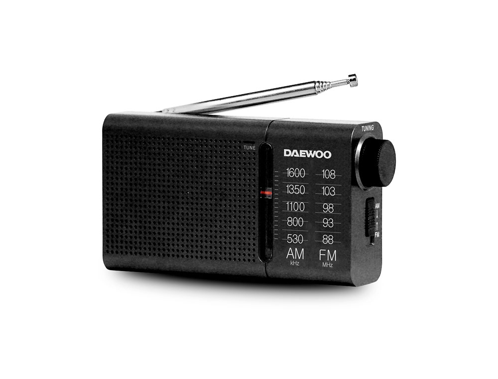 Este receptor analógico Daewoo DW1037 es una radio portátil compacta y funcional, diseñada para sintonizar emisoras en las bandas AM (530-1600 kHz) y FM (88-108 MHz). Su antena telescópica garantiza una mejor captación de señal, mientras que el altavoz frontal ofrece una salida de audio clara. Incluye auriculares básicos con conector jack de 3.5 mm para una escucha privada, ideal para estudiantes y usuarios que requieren una experiencia auditiva sin interrupciones.